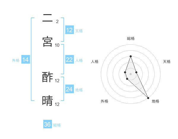 二宮 酢晴さんを姓名の画数から五運を鑑定