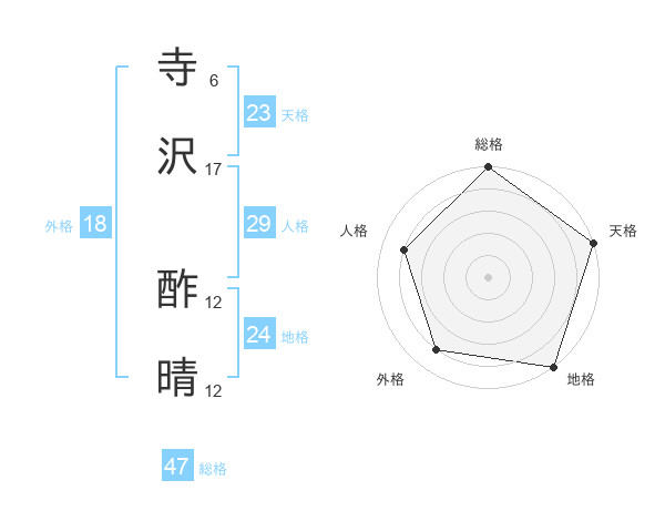 寺沢 酢晴さんの総格は47画の5点!