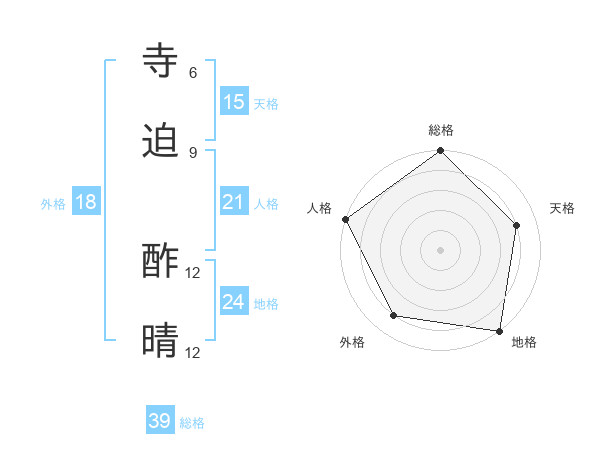 寺迫 酢晴さんの総格は39画の5点!