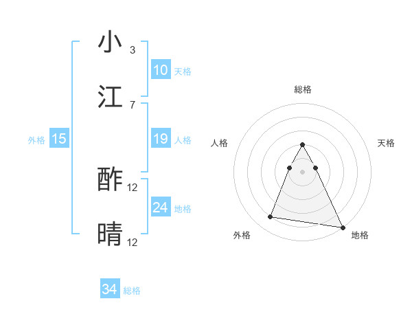 小江 酢晴さんを姓名の画数から五運を鑑定