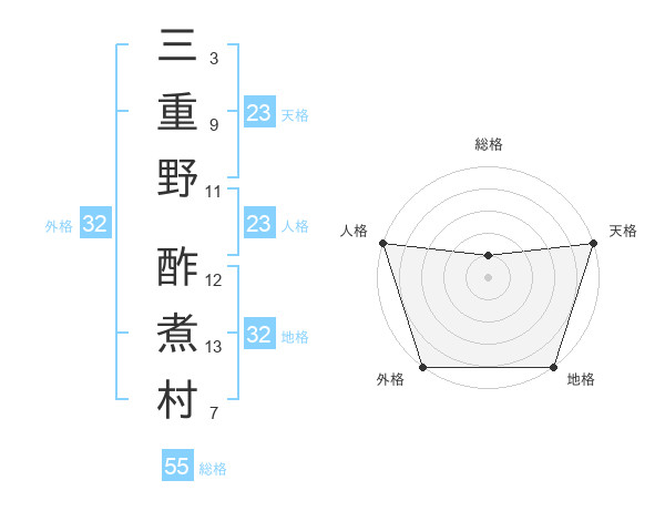三重野 酢煮村さんを姓名の画数から五運を鑑定