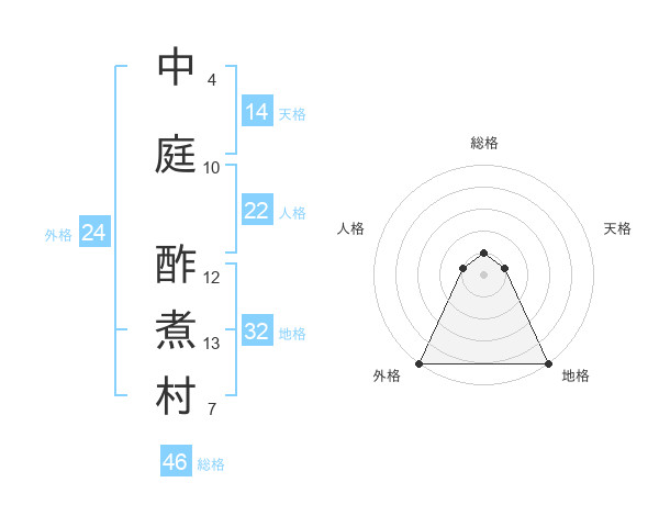 中庭 酢煮村さんを姓名の画数から五運を鑑定