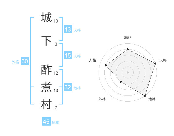 城下 酢煮村さんの総格は45画の4点!