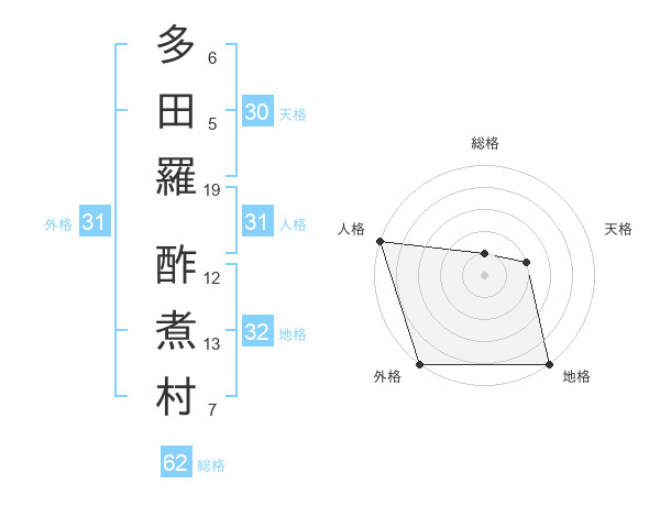多田羅 酢煮村さんの外格は31画の5点!