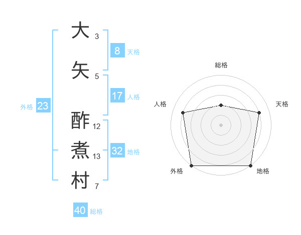 大矢 酢煮村さんを姓名の画数から五運を鑑定