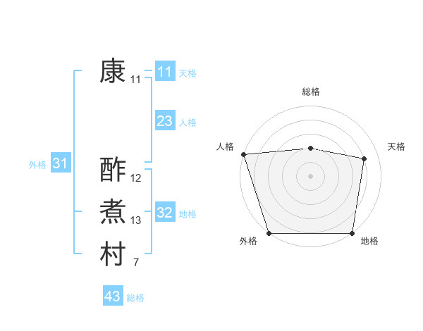 康 酢煮村さんを姓名の画数から五運を鑑定