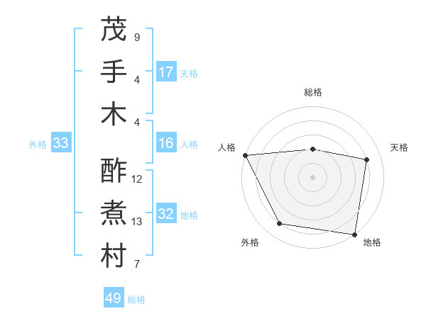 茂手木 酢煮村さんを姓名の画数から五運を鑑定