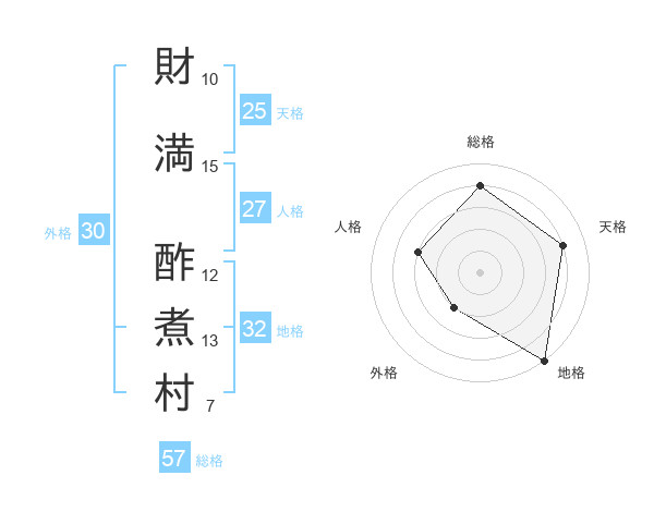 財満 酢煮村さんを姓名の画数から五運を鑑定