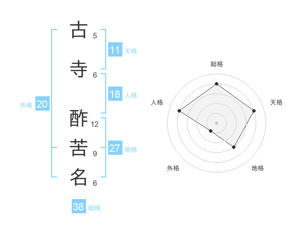 古寺 酢苦名さんを姓名の画数から五運を鑑定