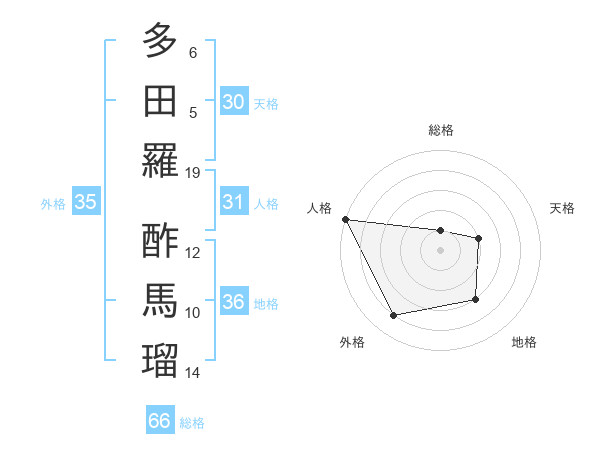 多田羅 酢馬瑠さんの人格は31画の5点