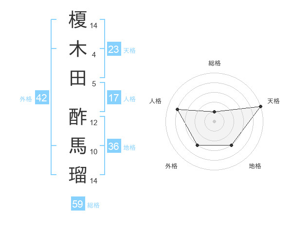 榎木田 酢馬瑠さんの天格は23画の5点!