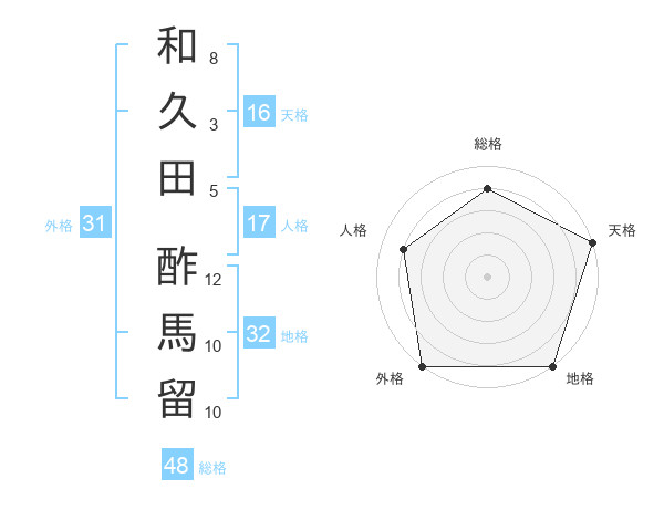 和久田 酢馬留さんを姓名の画数から五運を鑑定