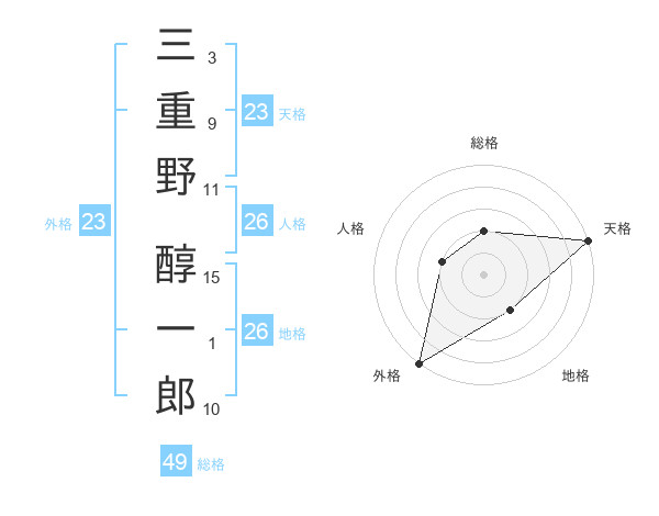 三重野 醇一郎さんを姓名の画数から五運を鑑定