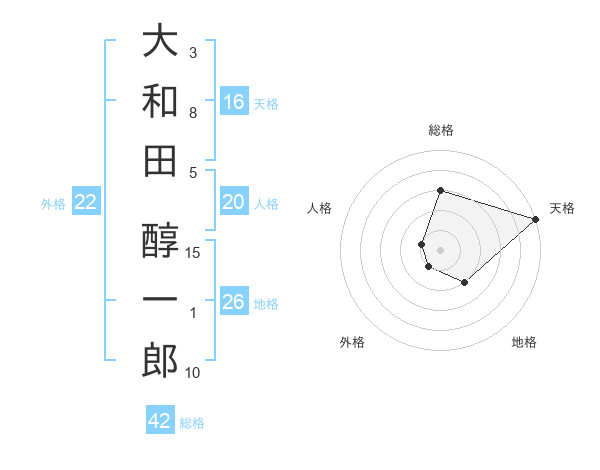 大和田 醇一郎さんを姓名の画数から五運を鑑定