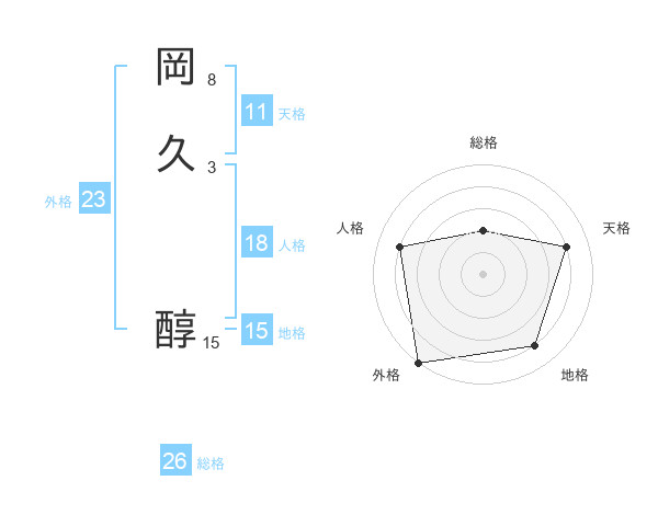 岡久 醇さんの総格は26画の2点!