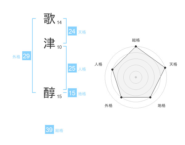 歌津 醇さんの総格は39画の5点!
