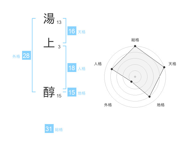 湯上 醇さんの総格は31画の5点!