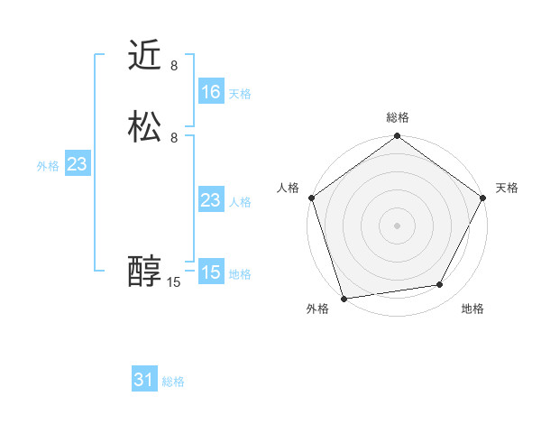近松 醇さんの外格は23画の5点!