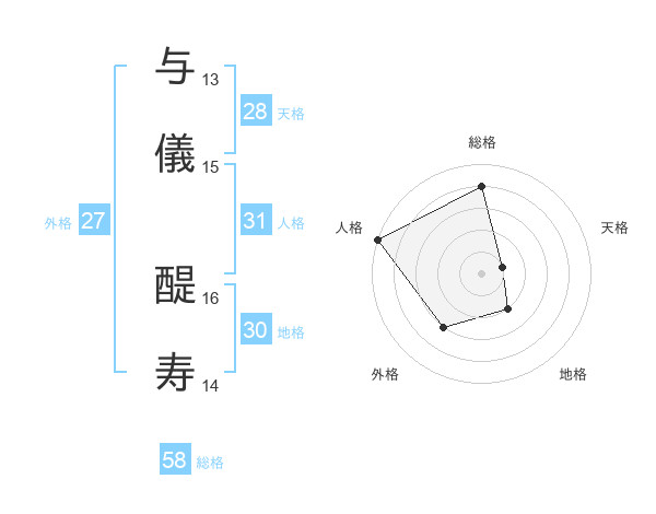 与儀 醍寿さんを姓名の画数から五運を鑑定