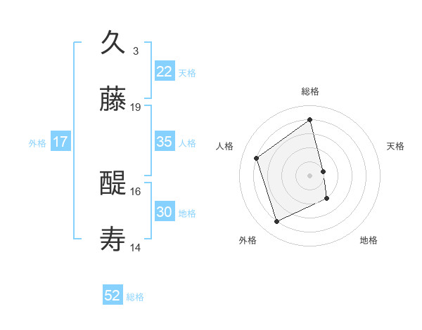 久藤 醍寿さんを姓名の画数から五運を鑑定