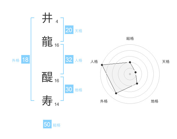 井龍 醍寿さんを姓名の画数から五運を鑑定