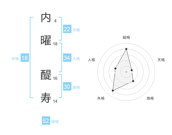 内曜 醍寿さんの総格は52画の4点!