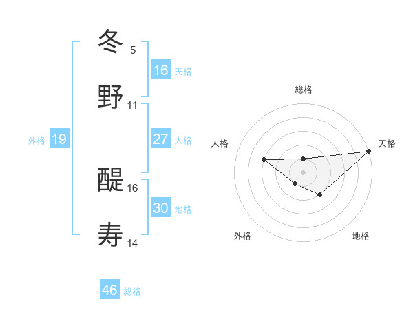 冬野 醍寿さんを姓名の画数から五運を鑑定