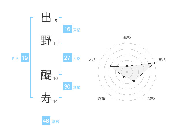 出野 醍寿さんを姓名の画数から五運を鑑定