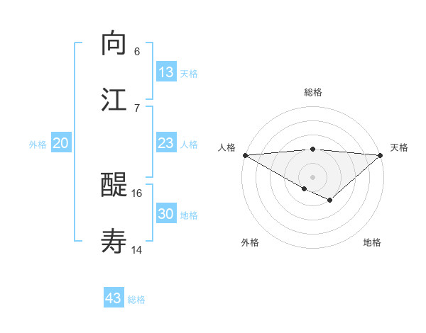 向江 醍寿さんを姓名の画数から五運を鑑定