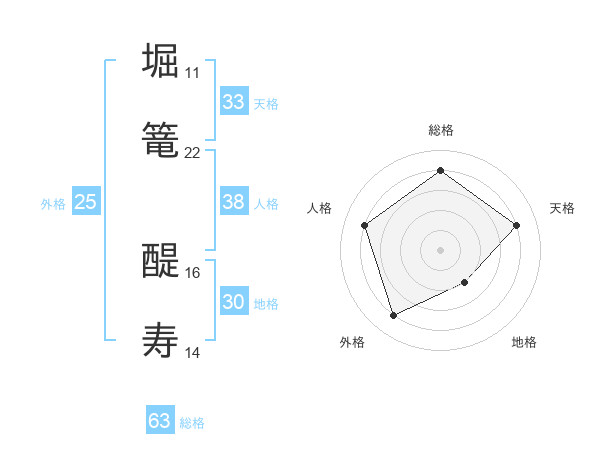 堀篭 醍寿さんの総格は63画の4点!
