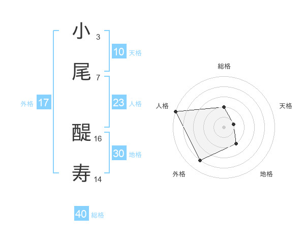 小尾 醍寿さんを姓名の画数から五運を鑑定