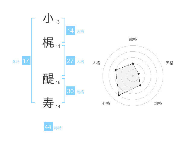 小梶 醍寿さんの総格は44画の2点!