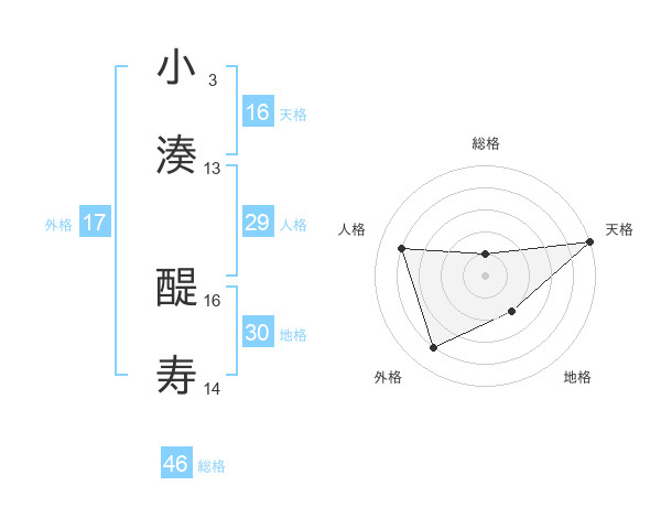 小湊 醍寿さんの地格は30画の2点!