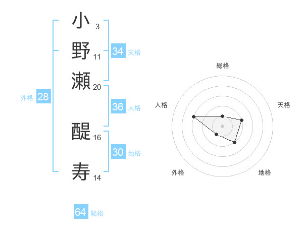 小野瀬 醍寿さんを姓名の画数から五運を鑑定