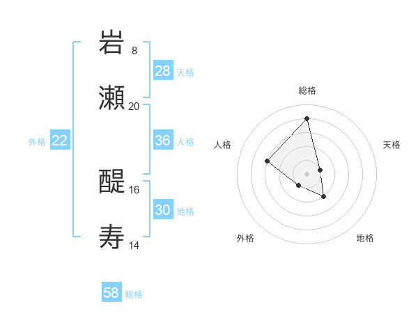 岩瀬 醍寿さんの総格は58画の4点!
