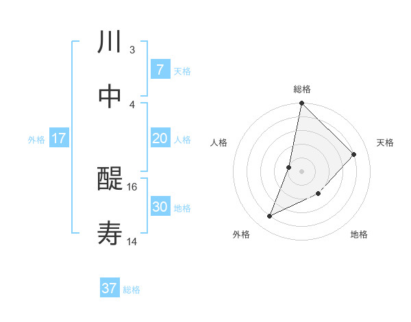 川中 醍寿さんの総格は37画の5点!