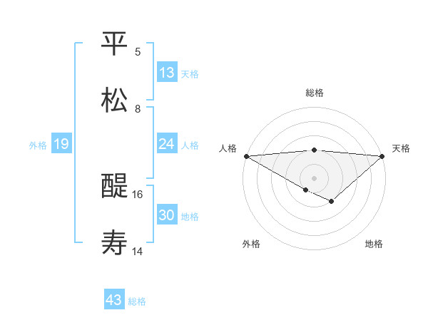 平松 醍寿さんを姓名の画数から五運を鑑定