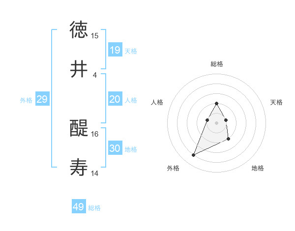 徳井 醍寿さんの総格は49画の2点!