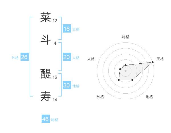 菜斗 醍寿さんを姓名の画数から五運を鑑定