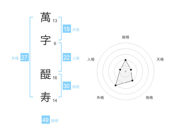 萬字 醍寿さんを姓名の画数から五運を鑑定