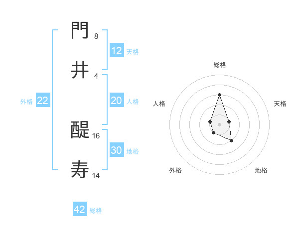 門井 醍寿さんの総格は42画の3点!