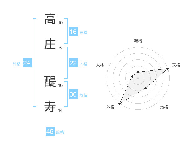 高庄 醍寿さんの総格は46画の1点!