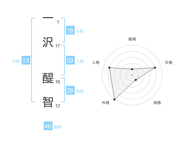 一沢 醍智さんを姓名の画数から五運を鑑定