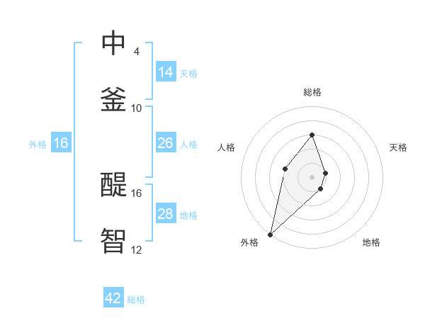 中釜 醍智さんの総格は42画の3点!