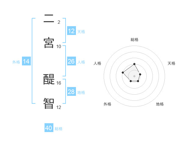 二宮 醍智さんを姓名の画数から五運を鑑定