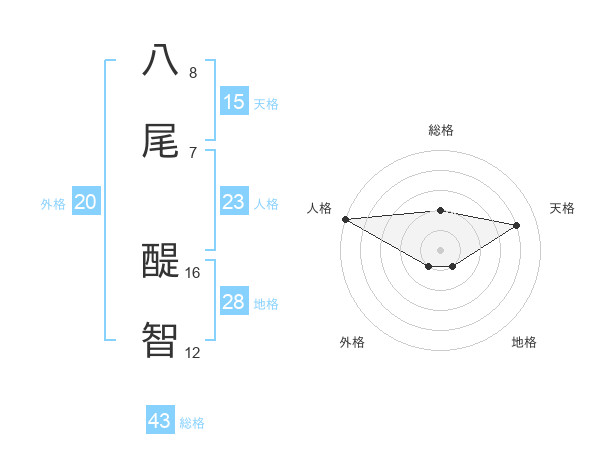 八尾 醍智さんの総格は43画の2点!