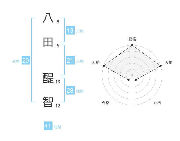 八田 醍智さんを姓名の画数から五運を鑑定