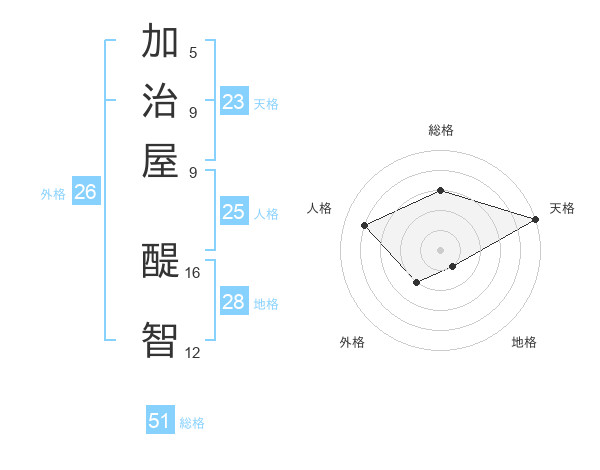 加治屋 醍智さんの天格は23画の5点!