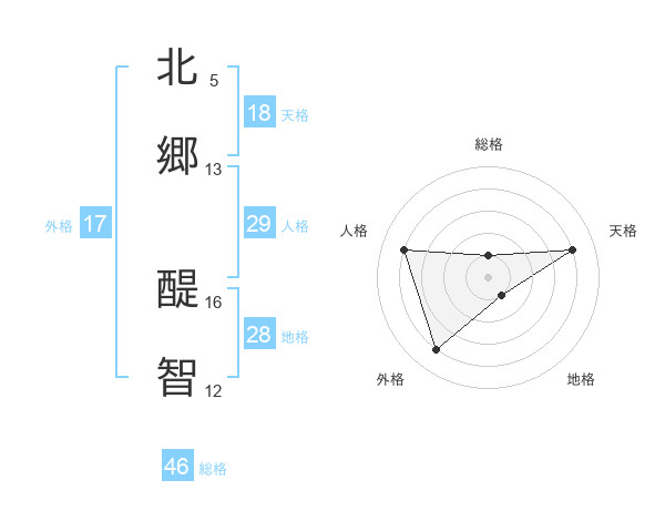 北郷 醍智さんを姓名の画数から五運を鑑定
