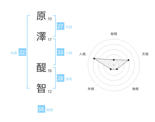 原澤 醍智さんを姓名の画数から五運を鑑定